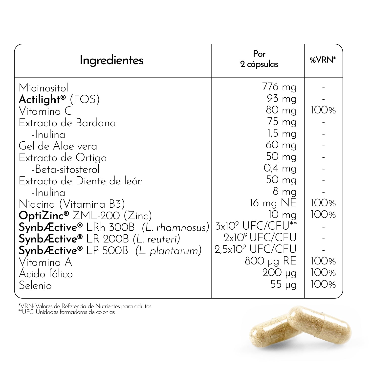 La fórmula incluye Synbalance®, Actilight®, Optizinc®ZML, mioinositol,
